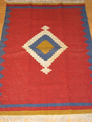 キリムは、遊牧民が敷物・衣類の収納などの生活用具として作られた織物です。