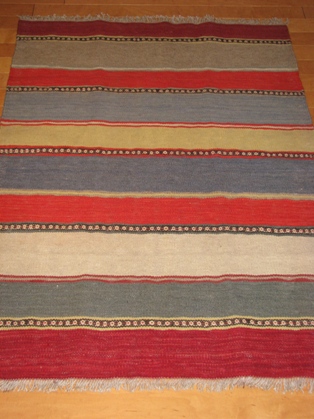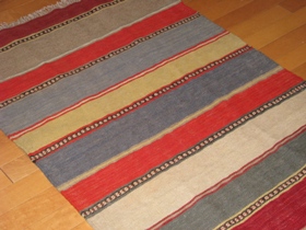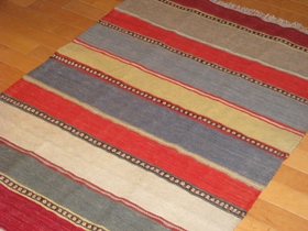 キリムは、遊牧民が敷物・衣類の収納などの生活用具として作られた織物です。