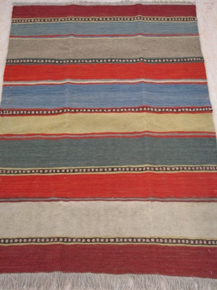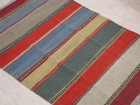 キリムは、遊牧民が敷物・衣類の収納などの生活用具として作られた織物です。