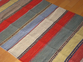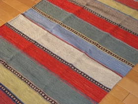 キリムは、遊牧民が敷物・衣類の収納などの生活用具として作られた織物です。