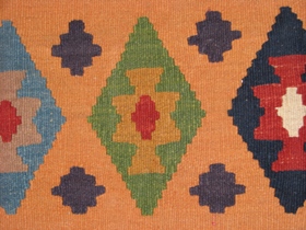 キリムは、遊牧民が敷物・衣類の収納などの生活用具として作られた織物です。