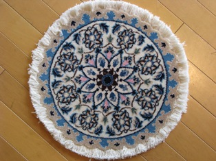 工房の数の多さから、絨毯の産地として有名なナイン産の絨毯。細やかな文様のまわりにシルクの白い糸が織り込まれているので、文様が浮き上がりたいへん美しい絨毯です。