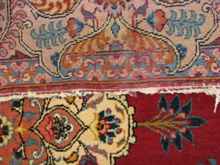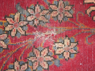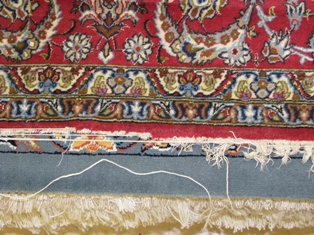 フサが絨毯織り部分まで切れてしまっている深刻な状態も