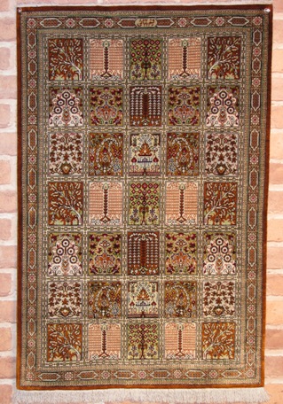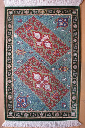 | クムは、ペルシャ絨毯の中で世界的には一番有名な産地です。日本人のお客様がほとんど クムの産地を知っています。クムの絨毯は、シルク100%の素材が有名ですが、その人気は シルクの肌触りと、色鮮やかな染を使ってデザインされ編まれていることです。 そのシルクの艶で編まれる絨毯は、見る方向を変えると色が変わって見えることから、見る 人の目を楽しませてくれます。しかし、クムにはシルク100%だけではなく、昔からウール100 %や、ウールとシルクが混ざっているタイプも編まれています。 欧米ではウールの方が人気があります。 |
